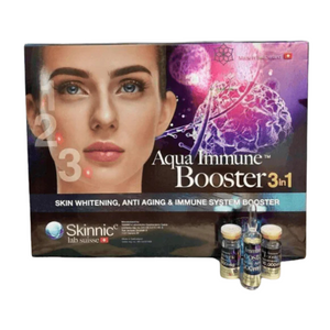 The Aqua Immune Booster 3 in 1 Injection combines whitening, immunity, and anti-aging in a 10-session Swiss therapy. It contains glutathione, Vitamin C, and immunity-boosting nutrients that not only brighten skin but also strengthen overall health. For those wanting to buy glutathione injections with added benefits, this 3 in 1 formula is a perfect choice.