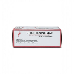 Brightening Max Skin Whitening Soap is a premium skin lightening and rejuvenating soap formulated with advanced brightening actives that work to cleanse, purify, and illuminate your skin. Enriched with Glutathione, Vitamin C, and Kojic Acid, this soap removes dirt, excess oil, and impurities while gently fading dark spots, blemishes, and uneven skin tone. It deeply nourishes the skin, restoring its natural radiance and giving you a visibly fairer and smoother complexion. Unlike harsh whitening soaps, Brightening Max is non-drying — it hydrates and softens the skin after every wash, leaving it fresh, glowing, and supple. Suitable for both men and women, it can be used on both face and body for an even, luminous tone from head to toe.