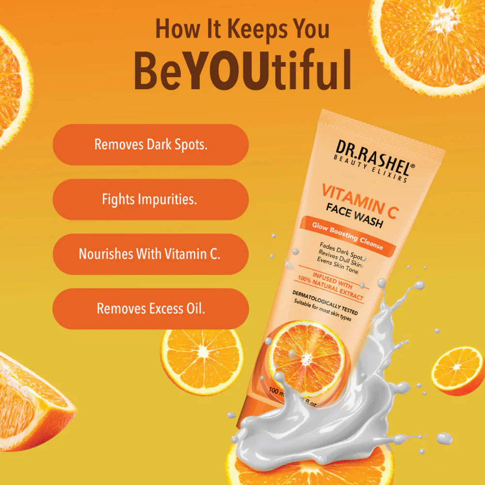 Dr. Rashel Vitamin C Face Wash – 100ml | Brightening, Refreshing & Glow