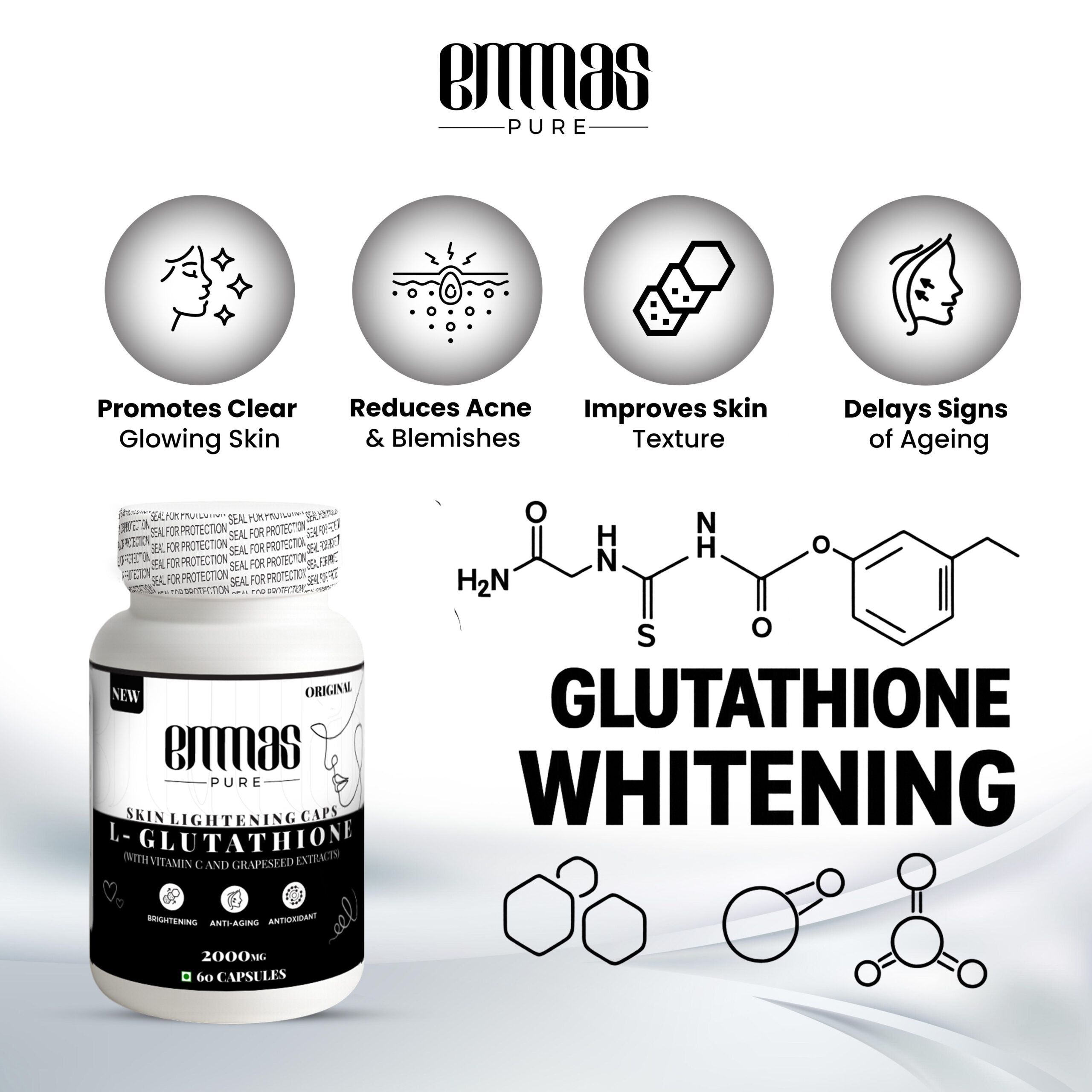 Emmas Pure L-Glutathione Skin Lightening Capsules – Advanced Whitening Formula with Vitamin C & Collagen – 60 Veg Caps