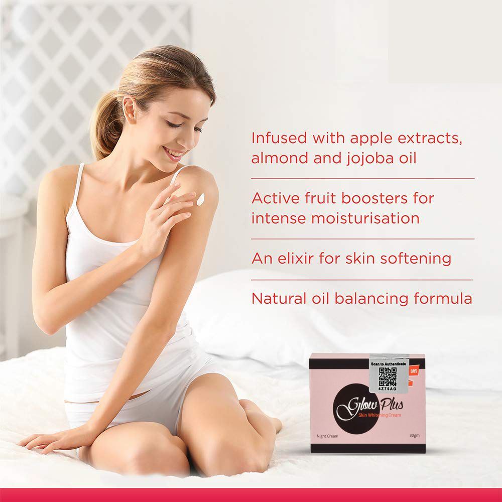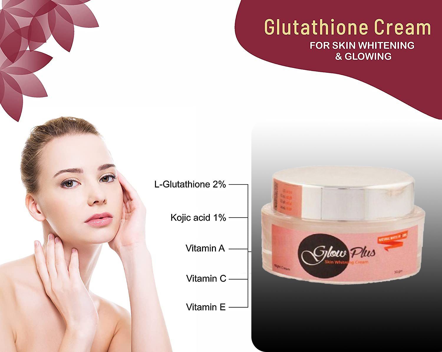 Glow Plus Skin Whitening Cream is formulated with glutathione, arbutin, and herbal extracts to deliver safe, effective brightening. Recognized as one of the best face night creams, it reduces pigmentation, hydrates deeply, and supports skin clarity.