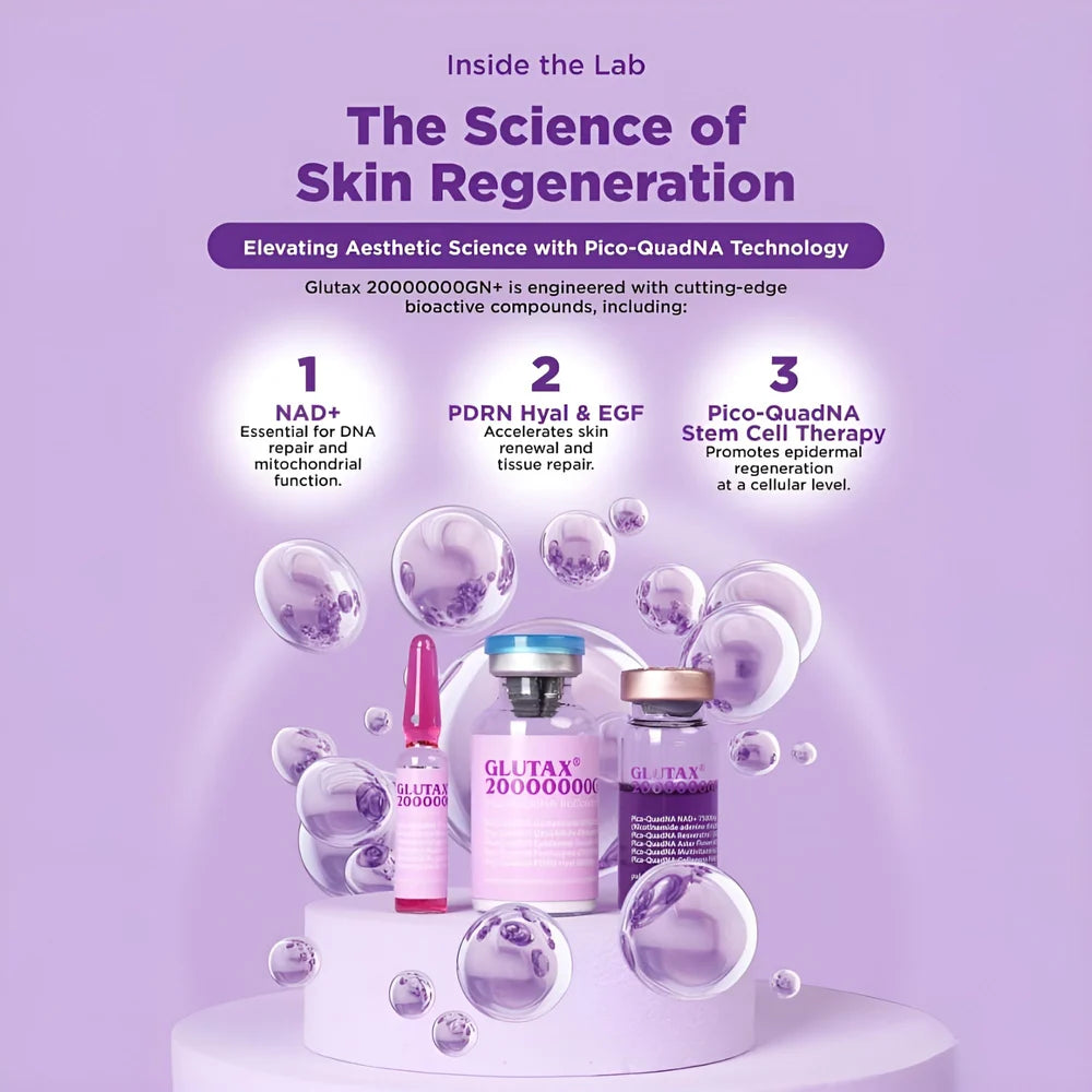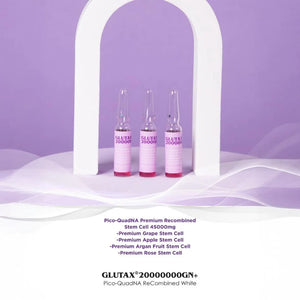 The Glutax 20000000GN+ Recombined White Injection is one of the most advanced formulations in the Glutax line, combining high-strength glutathione with multivitamins and growth factors for comprehensive skin benefits. Growth factors stimulate cell regeneration, promoting faster repair and rejuvenation. Collagen works to restore elasticity, while glutathione reduces melanin production for a lighter skin tone. Over 10 sessions, this powerful synergy helps achieve cumulative whitening, anti-aging, and skin renewal effects. Professional use ensures consistent and safe results, making Glutax 20000000GN+ a trusted name for achieving radiant and youthful skin worldwide.