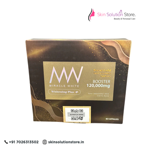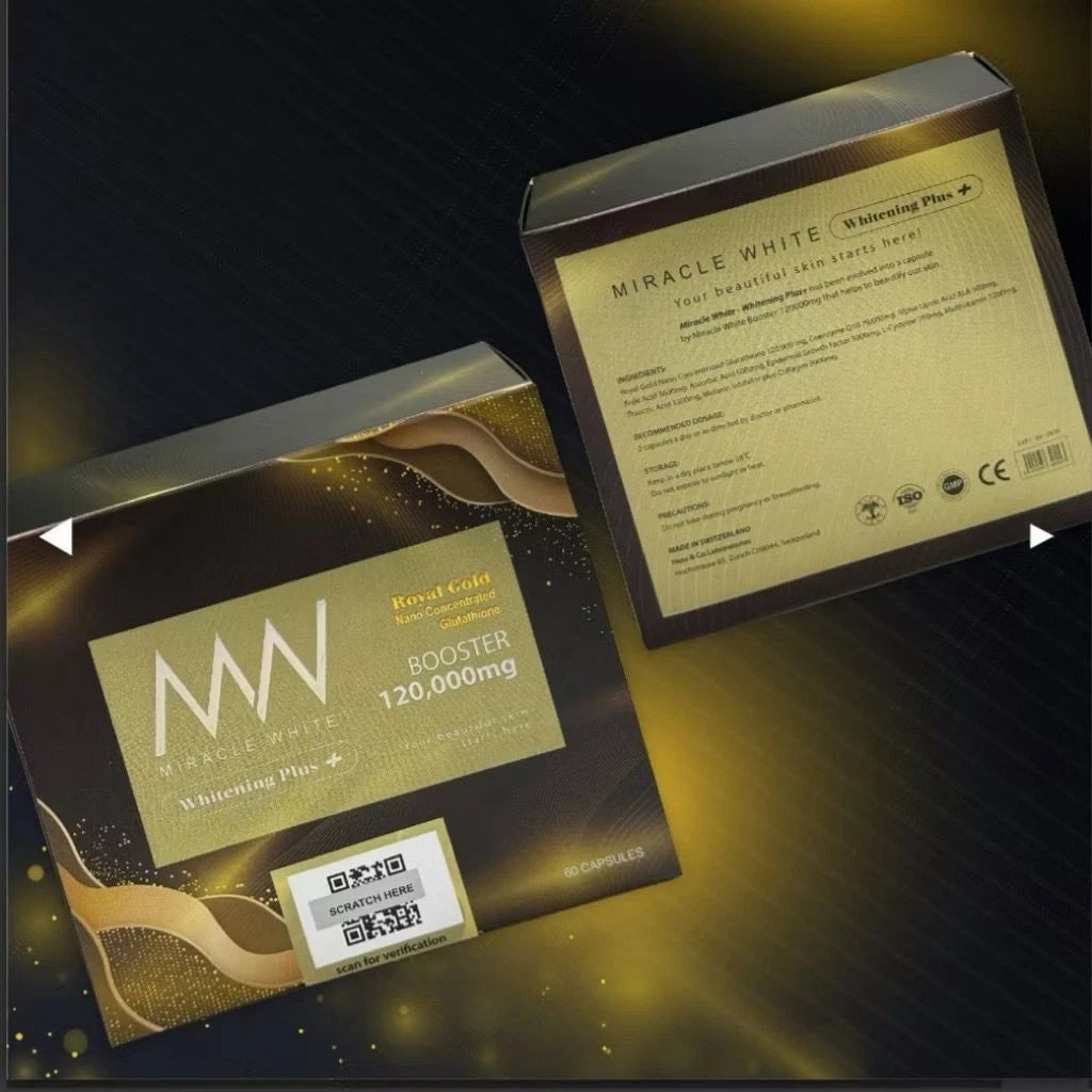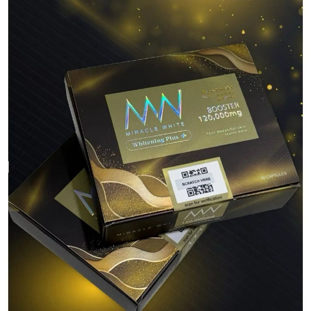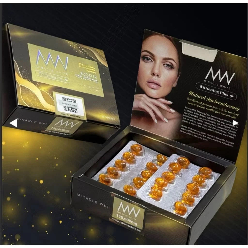 Miracle White 120,000mg Booster Whitening Plus+ Capsules – Premium nano glutathione formula that lightens, firms, and brightens skin from within for a luminous, flawless complexion.