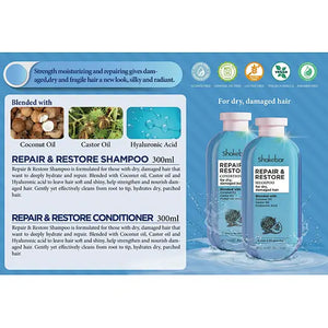Shakebar Repair & Restore Conditioner is a deeply nourishing formula designed to repair damaged hair, restore strength, and bring back natural smoothness. Enriched with keratin proteins, argan oil, and botanical extracts, this conditioner works to reduce breakage, seal split ends, and improve elasticity. It provides intense hydration while taming frizz, leaving hair soft, glossy, and manageable. Perfect for dry, brittle, or chemically treated hair, Shakebar Repair & Restore Conditioner helps transform weak strands into healthy, resilient locks with regular use.